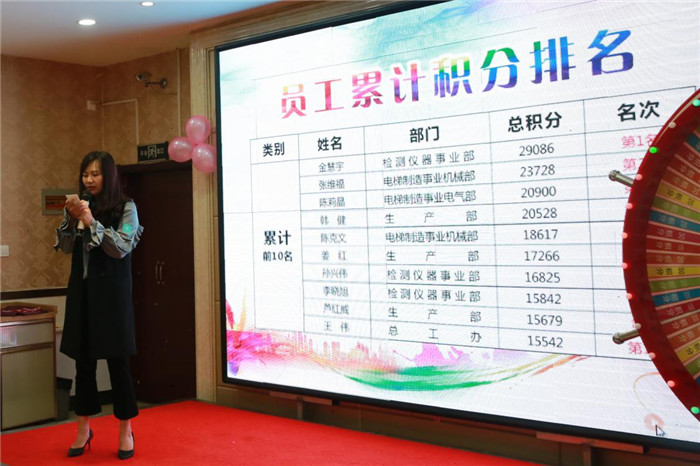 隨后,由人力資源部部長楊萍公布階段性積分的排名,由蘆永軍總經(jīng)理為積分排名三甲的員工頒發(fā)獎牌以及按照各部門積分排名情況為員工頒發(fā)獎品。